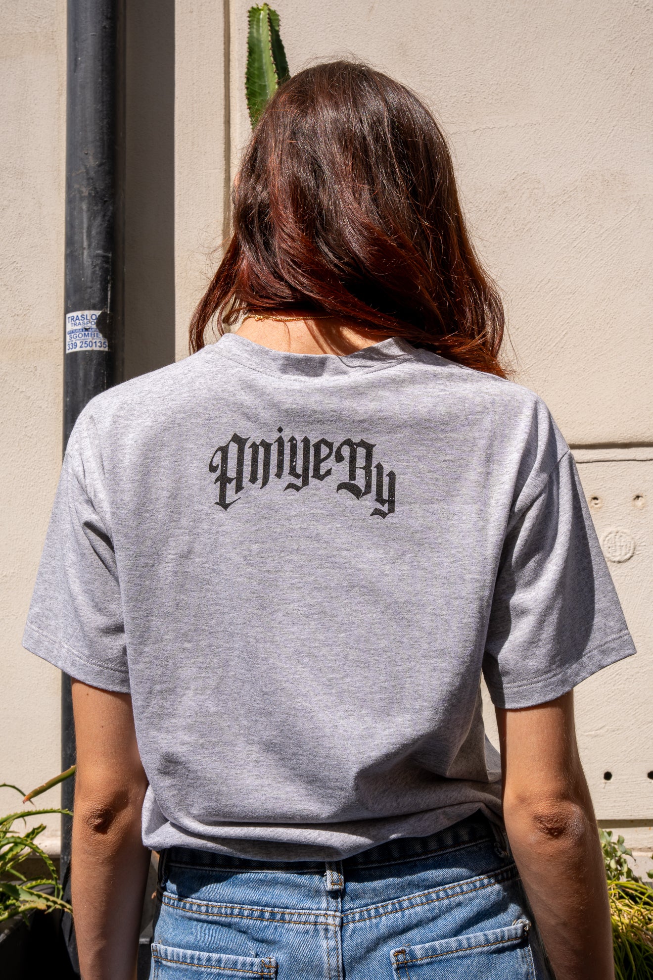Le borchie che incorniciano l’immagine donano un tocco rock originale, mentre la scritta “Aniye By” in carattere gotico sul retro aggiunge una nota distintiva.