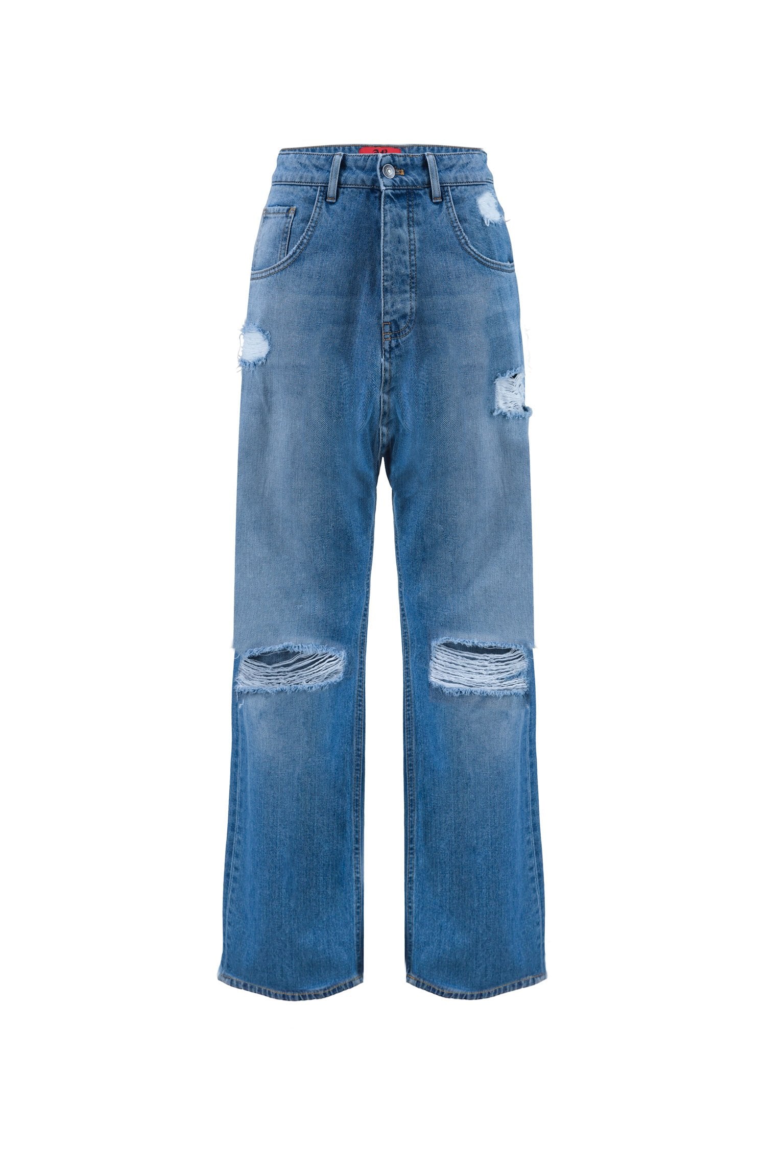 Pantalone dritto in denim con rotture